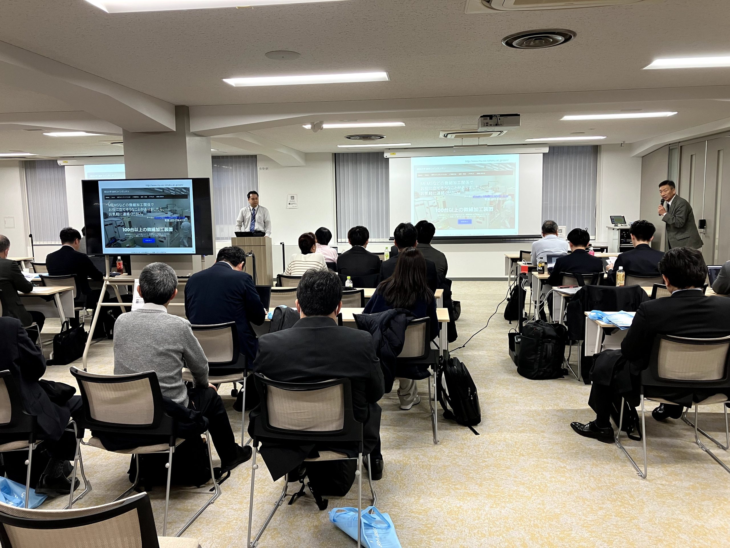 2026年3月13日、RISE GATE NIHONBASHI(東京都中央区日本橋室町1丁目7-1 スルガビル7階)にて、文部科学省マテリアル先端リサーチインフラ(ARIM)高度デバイス領域、東北大学マイクロシステム融合研究開発センター(μSIC)、MEMSパークコンソーシアム(MEMSPC)の共催にて、「ARIM高度デバイス領域/μSIC合同研究会-半導体デバイス・プロセス開発におけるデータ利活用-」が開催され約60名が参加しました。