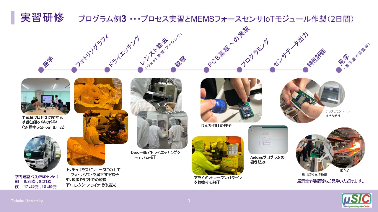 東北大学マイクロシステム融合研究開発センター(μSIC)では、「東北大学 試作コインランドリ」の装置を活用し、学生や社会人向けの実習研修を受け入れております。